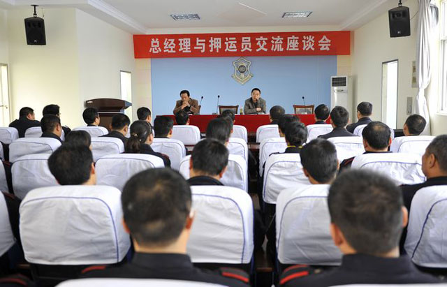 11月27日上午,總公司總經(jīng)理與押運(yùn)員交流座談會(huì)在押運(yùn)中心三樓會(huì)議室舉行。總經(jīng)理婁伯翱在會(huì)上針對(duì)押運(yùn)隊(duì)伍中隊(duì)員所提出來(lái)的問(wèn)題進(jìn)行了分類(lèi)解答和說(shuō)明,并對(duì)會(huì)議中與會(huì)人員現(xiàn)場(chǎng)提出的有關(guān)問(wèn)題面對(duì)面進(jìn)行了溝通交流。