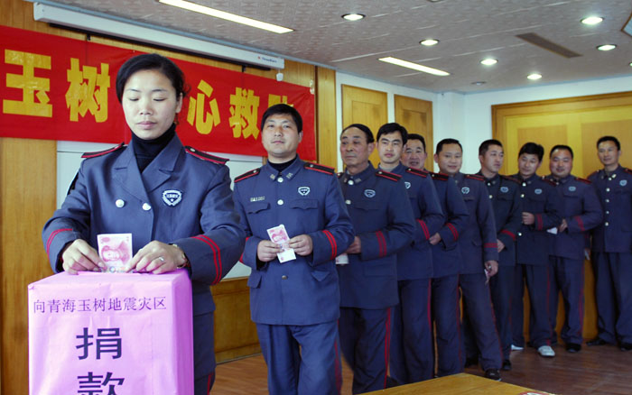連日來(lái),淮安市保安服務(wù)總公司充分發(fā)揚(yáng)“一方有難、八方支援”的集體主義精神,通過(guò)捐款等形式積極向玉樹(shù)地震災(zāi)區(qū)奉獻(xiàn)愛(ài)心、貢獻(xiàn)力量。