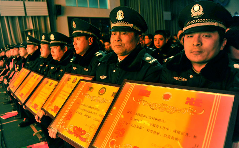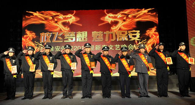 首先,與會人員通過大屏幕投影觀看了公司2011年度多媒體工作總結報告;表彰了過去一年中為淮安保安發(fā)展做出突出貢獻的先進集體、先進個人和業(yè)務標兵;總公司押運中心、人防管理中心等15個部門負責人向總經理遞交了2012年度崗位目標責任狀。