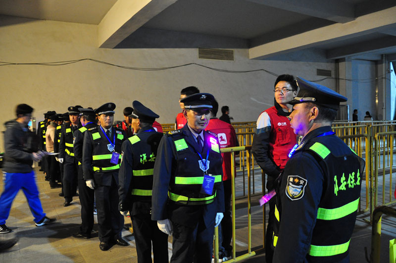為做好安保工作,11月2日上午,人防中心專門組織參加臨沂安保人員進(jìn)行專項(xiàng)培訓(xùn)。3日上午7:00集合出發(fā),提前到達(dá)臨沂大學(xué),按照承辦方要求,現(xiàn)場搭建300米防爆墻,10個(gè)預(yù)檢票口通道,承擔(dān)了25000名觀眾入場的安檢、檢票通道的秩序維護(hù)等安保任務(wù)。