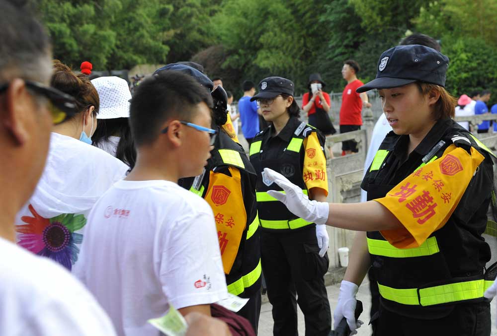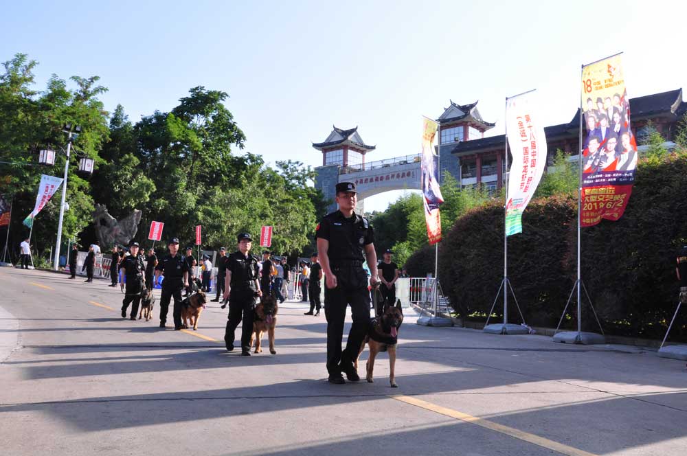 由于晚會演出現場地處山腰,給安檢和安保工作帶來一定的難度。為確實做好安保任務,總公司多次召開專項工作會議,統(tǒng)一部署安保工作,人防中心總監(jiān)王錦春先后帶領領導班子多次到盱眙都梁廣場踏勘現場,熟悉崗位,開展現場拉練,研定安保方案??偣狙杆俪闪⑼頃弊C檢查、安全檢查、搜毒搜爆、秩序維護、安保巡邏、駐地保衛(wèi)、無人機監(jiān)控、突發(fā)事件處置組等安保小組,同時抽調行政中心、人防中心、押運中心、科技公司、器材公司、犬防大隊、無人機飛控隊、保安中專班、銀盾檢測站等部門人員參與安?;顒?。