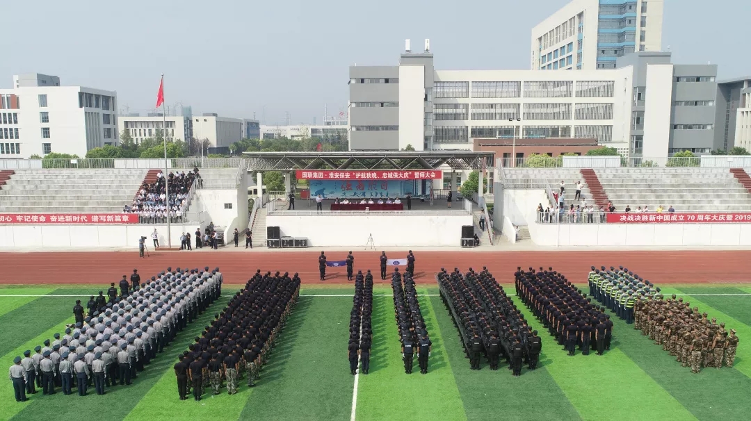 為認真做好央視秋晚和新中國成立70周年大慶安保工作,9月8日上午,淮安市保安服務總公司在淮安市高級職業(yè)技術學校體育場隆重舉行“護航秋晚、忠誠保大慶”誓師大會暨匯報演練,淮安市公安局治安支隊政委顏志龍、保安監(jiān)管大隊、市高職校等領導觀摩了科目演練,總公司領導班子和各部門負責人以及員工代表共800余人參加了大會。
