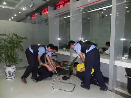 為進一步做好押運工作,6月30日,德州市在市區(qū)某工商銀行現(xiàn)場開展反搶劫模擬演練。按照方案部署,兩名押運隊員扮演的犯罪分子來到業(yè)務窗口說要取10萬現(xiàn)金,隨后拿出事先準備好的仿真***和炸藥包逼工作人員把錢交出來,隨后三名押運隊員上前把“犯罪分子”捉拿歸案。此時現(xiàn)場響起熱烈的掌聲,演練圓滿結束。