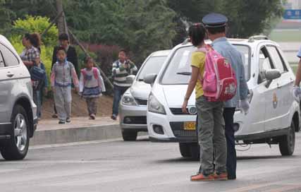 昨天7時許,記者再次來到了校園門口。當(dāng)時,是那位體形稍胖的保安站在路邊負(fù)責(zé)護(hù)送學(xué)生。