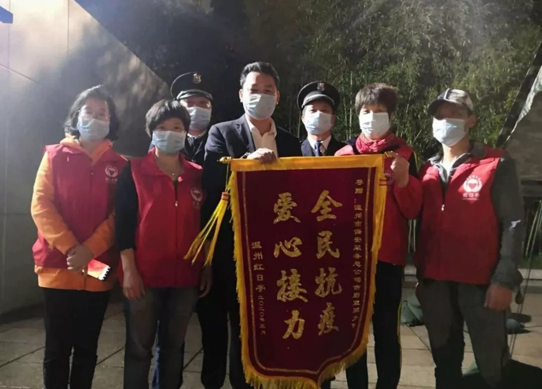 雖然捐款金額不高,但都包含著溫州??傟爢T們的心意。3月28日,紅日亭為溫州??偟膼坌木栀涃浰湾\旗,錦旗上寫著“全民抗疫、愛心接力”。隊員們表示這是應(yīng)該做的,在災(zāi)難面前,眾志成城,守望相助,我們必將共渡難關(guān)。