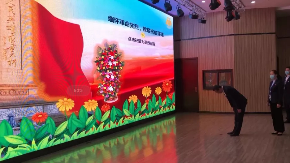 伴隨著低沉的哀樂聲,70多名公司黨員、團(tuán)員一一上臺(tái),向線上英雄紀(jì)念碑敬獻(xiàn)電子花圈,向英烈們默哀,寄托深深緬懷之情。