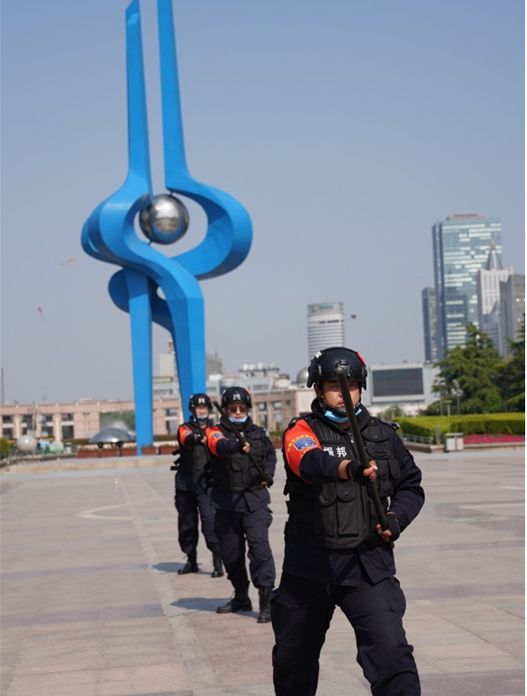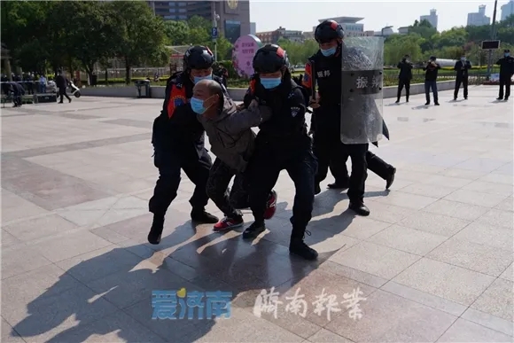 颯爽英姿的安保人員全副武裝,整齊劃一的隊(duì)伍斗志昂揚(yáng),4月28日下午,一場立足“疫情防控與節(jié)日安全”的綜合安保演練在泉城廣場舉行。