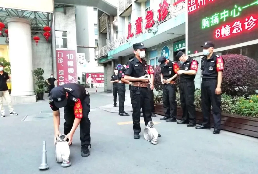 2020年新年伊始,新冠肺炎席卷全國,人民的生活與工作受到了巨大的影響。醫(yī)院作為疫情期間沖在一線的特殊單位,在疫情情況最嚴峻的情況下也不能進行封閉管理,一線保安員既要保證醫(yī)院秩序的正常運行,也要保證所有進出人員的身體狀況無異常,嚴格要求“一絲不茍,萬無一失”,工作量巨大。為了調動隊員工作積極性,保證工作質量,5月15日下午,溫州??傊行拇箨牻M織開展市人民醫(yī)院保安大隊崗位訓練活動。