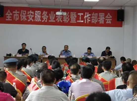 近日,馬鞍山市公安局保安管理支隊(duì)、市保安行業(yè)協(xié)會(huì)在金江保安學(xué)校召開(kāi)全市保安管理暨表彰工作會(huì)議,表彰獎(jiǎng)勵(lì)2019年表現(xiàn)優(yōu)秀的保安公司和保安員并部署下半年保安管理工作。保安管理支隊(duì)全體民警、市保安協(xié)會(huì)負(fù)責(zé)人、全市保安從業(yè)單位負(fù)責(zé)人及獲獎(jiǎng)代表等100余人參加了這次會(huì)議。