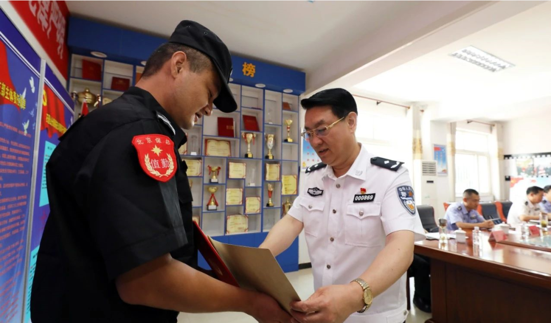 7月14日下午,北京市保安服務(wù)總公司在石景山分公司組織召開新冠肺炎疫情防控輔警安保勤務(wù)表彰會議,總公司總經(jīng)理張濤、副總經(jīng)理趙守存,石景山公安分局政委龔嘉明,總公司相關(guān)部門負責(zé)人、石景山分公司領(lǐng)導(dǎo)班子成員和立功受獎保安集體、保安員代表參加了會議,會議由趙守存副總經(jīng)理主持。