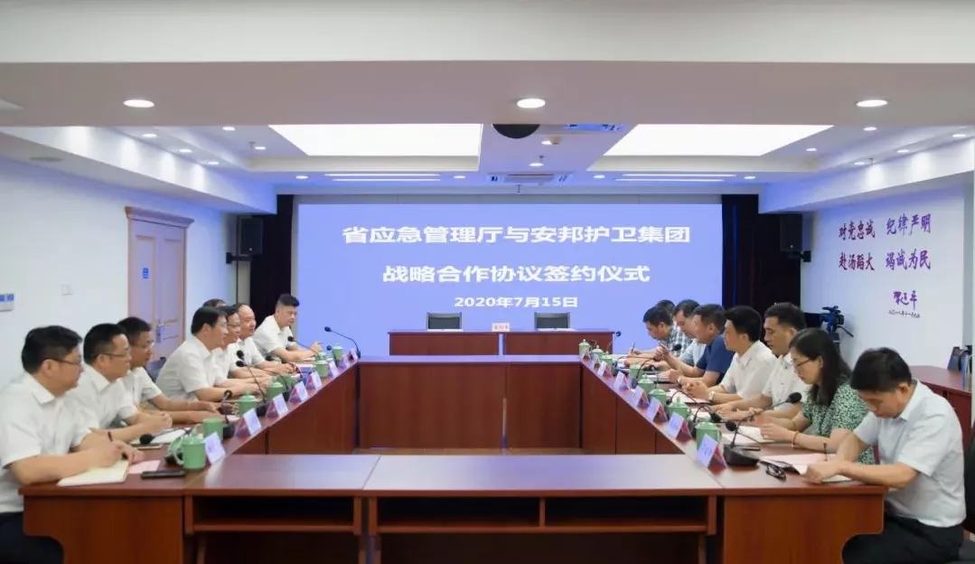 7月15日,浙江省應急管理廳和浙江安邦護衛(wèi)集團有限公司在浙江省行政中心舉行戰(zhàn)略合作簽約儀式。浙江省應急管理廳黨委書記、廳長凌志峰,省國資委黨委委員、副主任劉盛輝,安邦護衛(wèi)集團黨委書記、董事長吳高峻出席簽約儀式并致辭。
