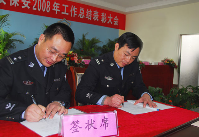 年度工作總結(jié)表彰大會上,婁伯翱總經(jīng)理與保安部、押運中心、技術(shù)防范部等