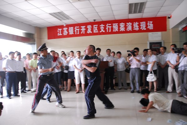 演練主要模擬犯罪分子持刀搶劫錢箱和客戶在提取大額現金時進行搶劫等突發(fā)情況。參練人員按照緊急處置預案各司其責,迅速有序地開展各項應對處置工作,取得了預期的效果。