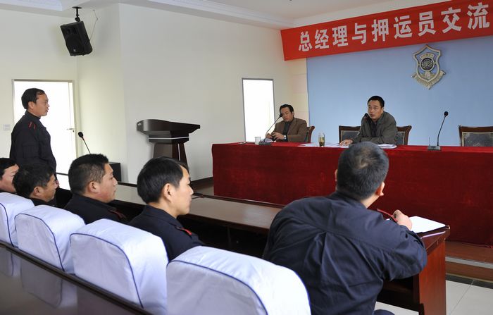 為了進一步加強守護押運隊伍管理,適時掌握一線隊員的思想動態(tài),2010年11月27日上午, 公司在押運中心三樓召開了“總經(jīng)理與押運員面對面交流座談會”。押運中心市區(qū)全體守押人員、縣區(qū)押運員代表和公司各部門負(fù)責(zé)人及機關(guān)部分員工160余人參加了會議。