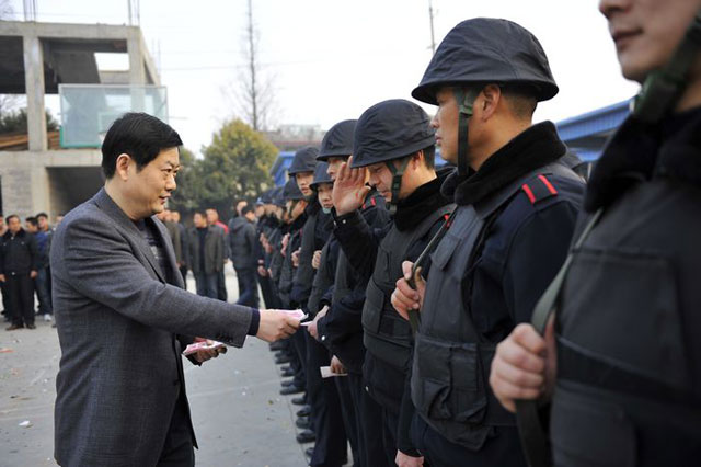 2月3日大年初一上午,市公安局黨委委員、副局長、紀(jì)委書記初曉在公司總經(jīng)理婁伯翱、副總經(jīng)理王克、徐文剛的陪同下,親切慰問了總公司武裝押運員并發(fā)放了慰問金。初書記代表市局黨委向大家拜年并致以節(jié)日的問候和祝福!