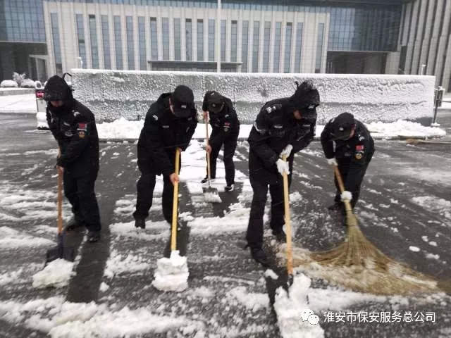 然而,雪景甚美,卻為出行的行人們帶來了嚴寒和積雪成冰的出行困難?;窗彩斜0卜?wù)總公司的保安們,考慮到種種問題,不畏嚴寒,在夜間按時出車執(zhí)勤,天不亮就拿起掃雪工具,積極主動清掃客戶單位門前、院內(nèi)積雪。積雪松的地方用推雪板推,積雪壓實的地方就用鐵鍬一點點的鏟除,執(zhí)勤崗點上的保安們呈現(xiàn)出一派火熱的鏟雪場景,讓城市煥發(fā)潔凈的光彩。