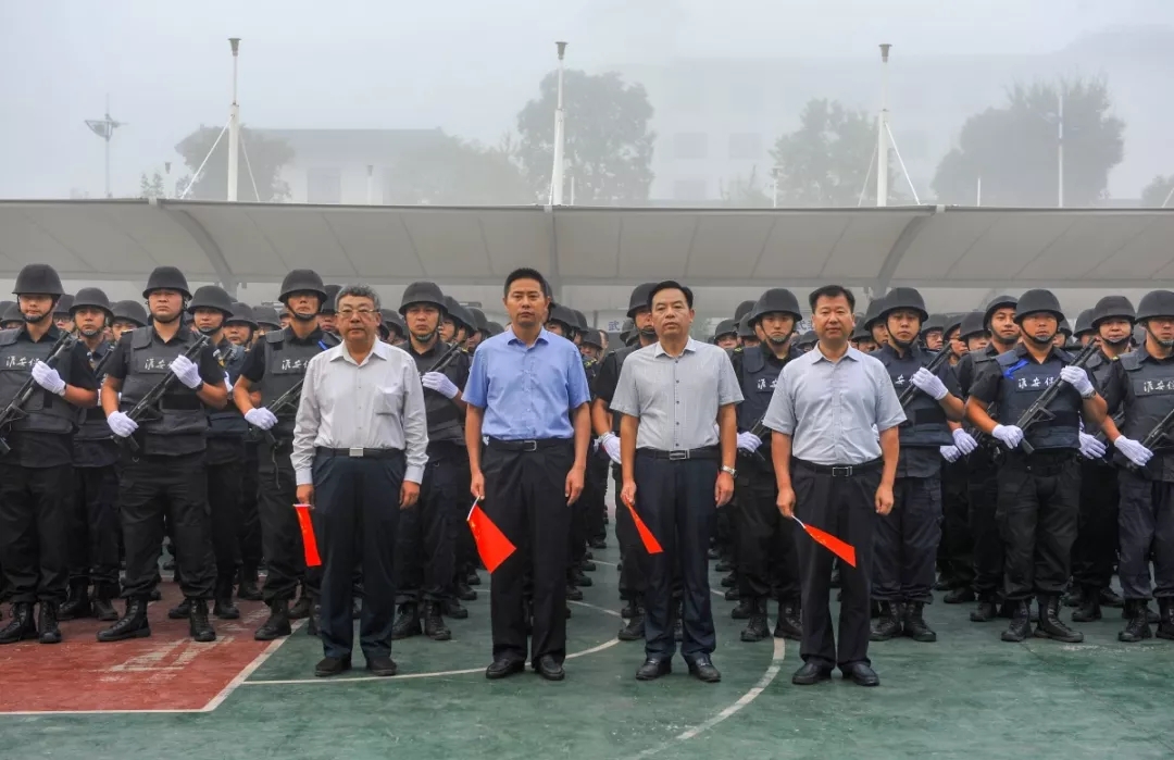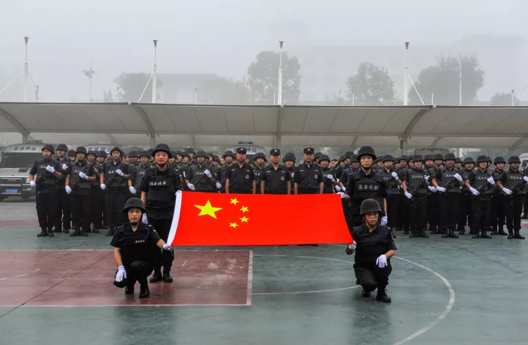 上午6時28分,升旗儀式正式開始。一名旗手、兩名護旗手及10余名保安班學員方隊邁著整齊的步伐,護送國旗正步走到升旗臺,伴隨著雄壯的國歌聲響起,徐徐將鮮艷的五星紅旗冉冉升起??偣驹趫龅母刹柯毠ぴ谏炫_前隊列整齊、肅穆而立,滿懷敬意地向國旗行注目禮,齊聲高唱國歌,獻上對祖國最深、最美好的祝福。
