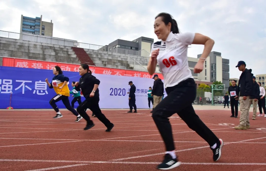 在體能比賽現(xiàn)場,選手們你追我趕,奮勇拼搏。